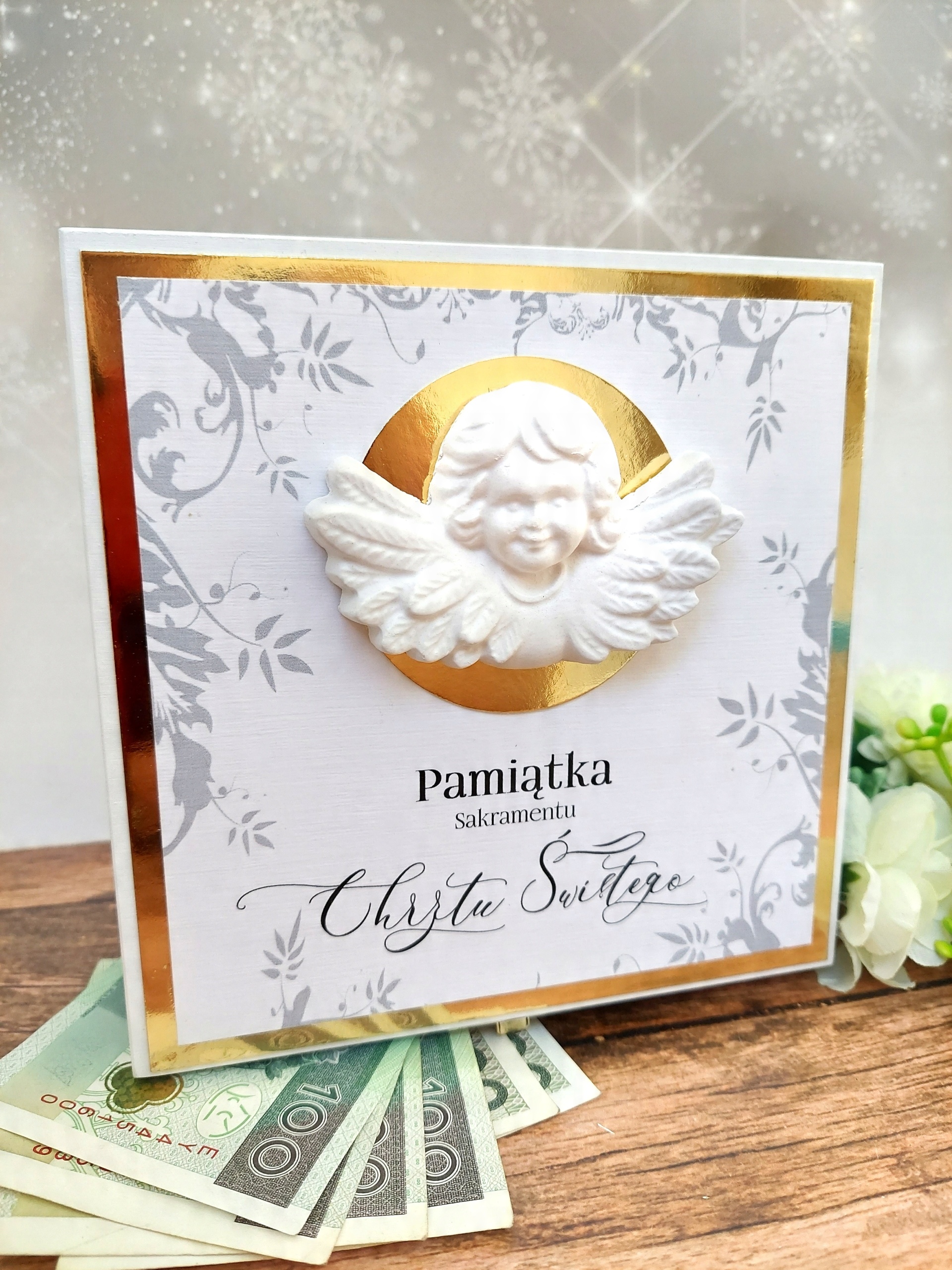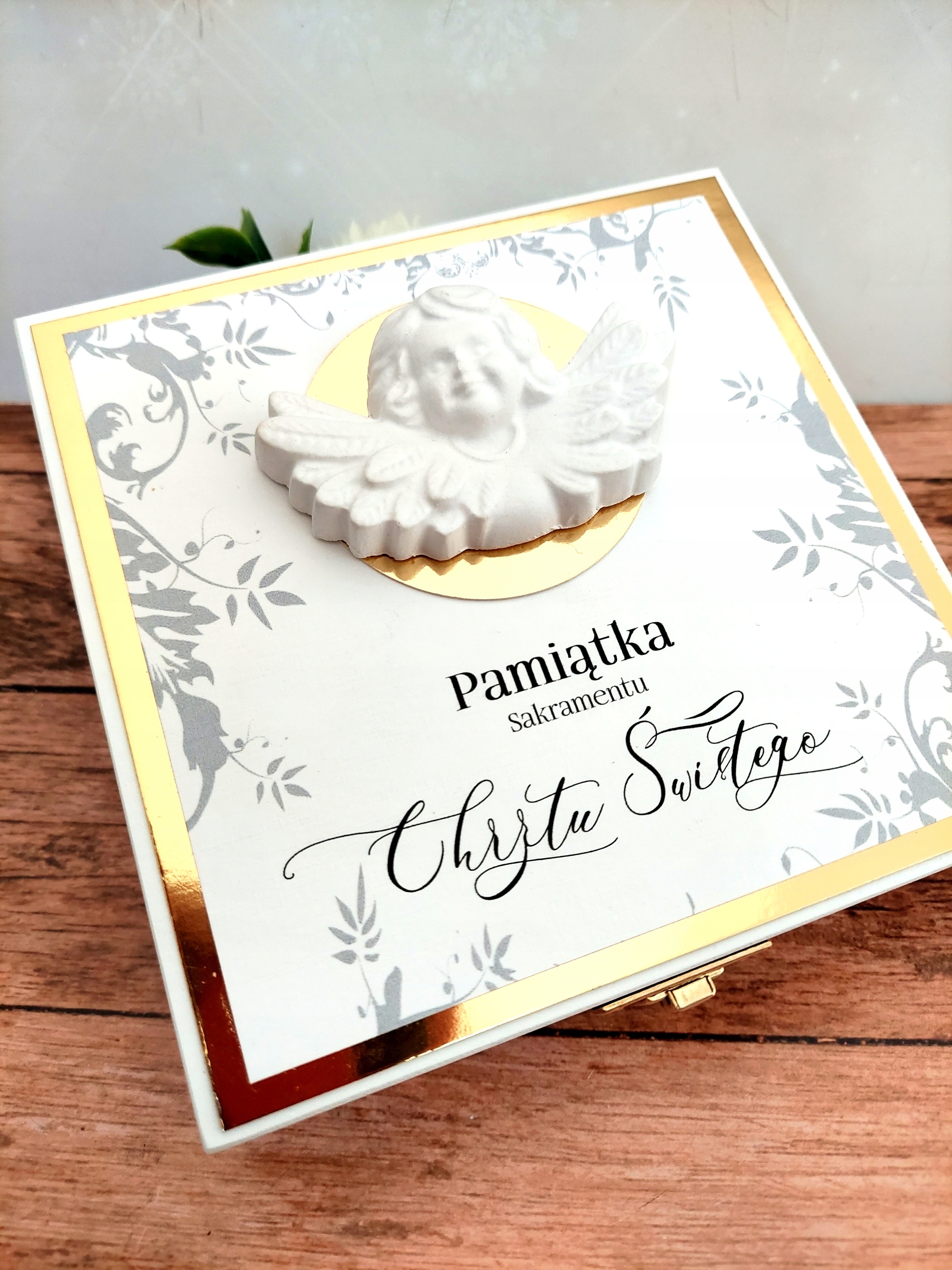 Сувенір на хрещення БІЛА скринька для готівки АНГЕЛ