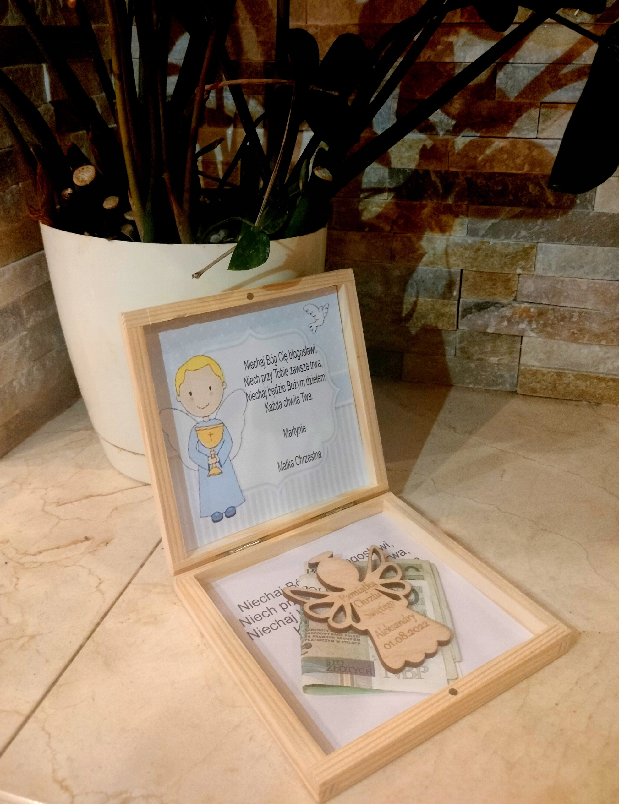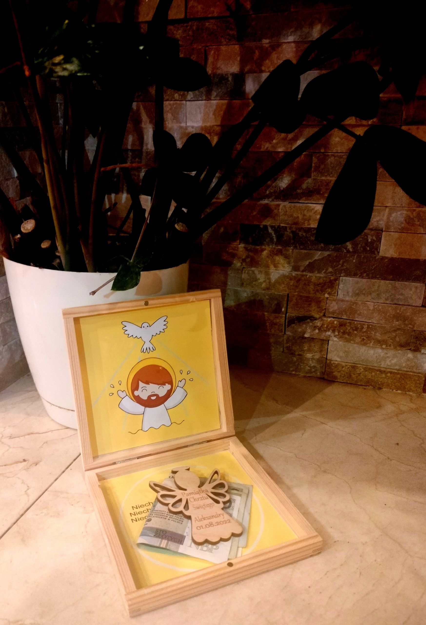 Коробка для конверта на Святое Крещение с ангелом и магнитом