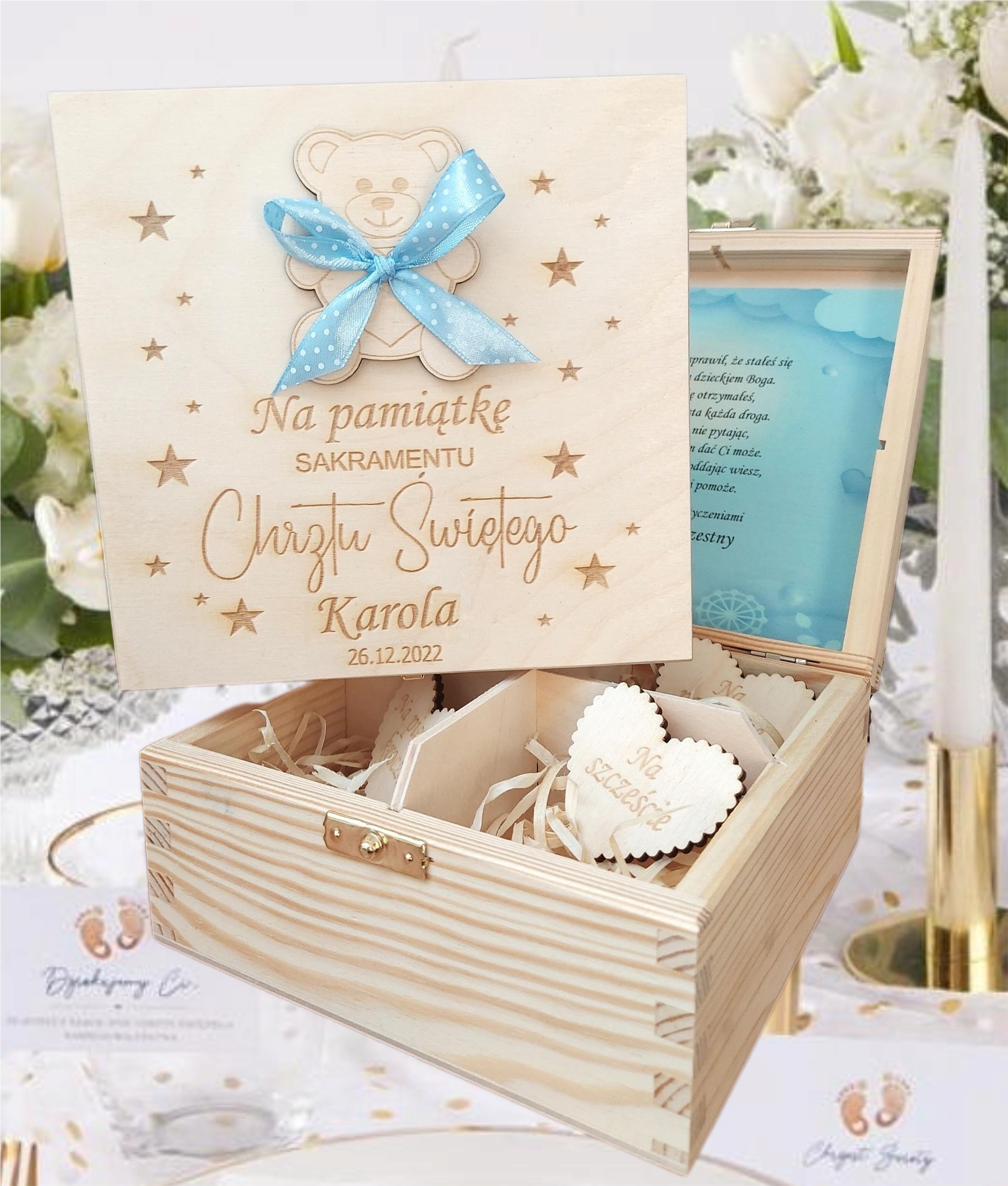Деревянная шкатулка с 4 отделениями и индивидуальными пожеланиями.