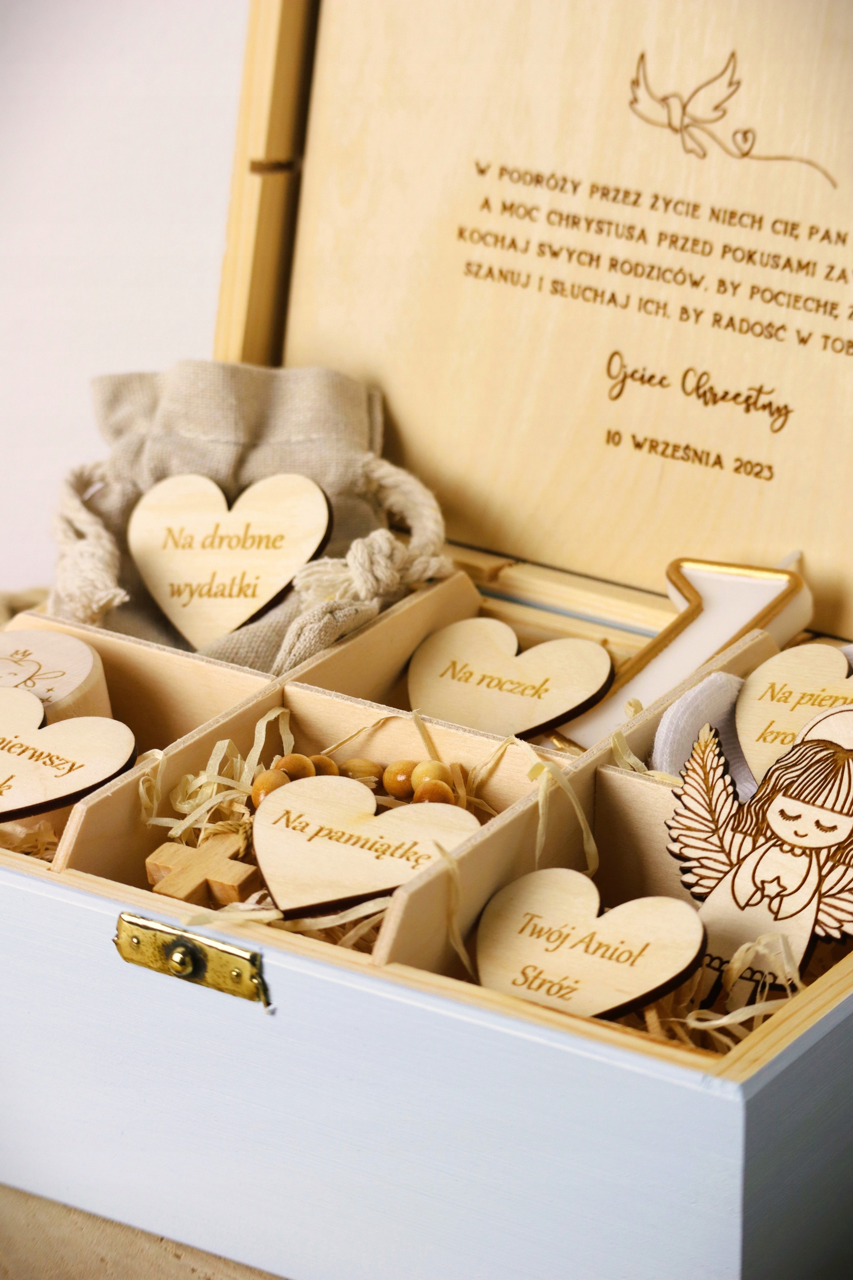 СУВЕНІР НА СВЯТО ХРЕЩЕННЯ Подарункова коробка спогадів на хрещення Синя ПОРОЖНЯ