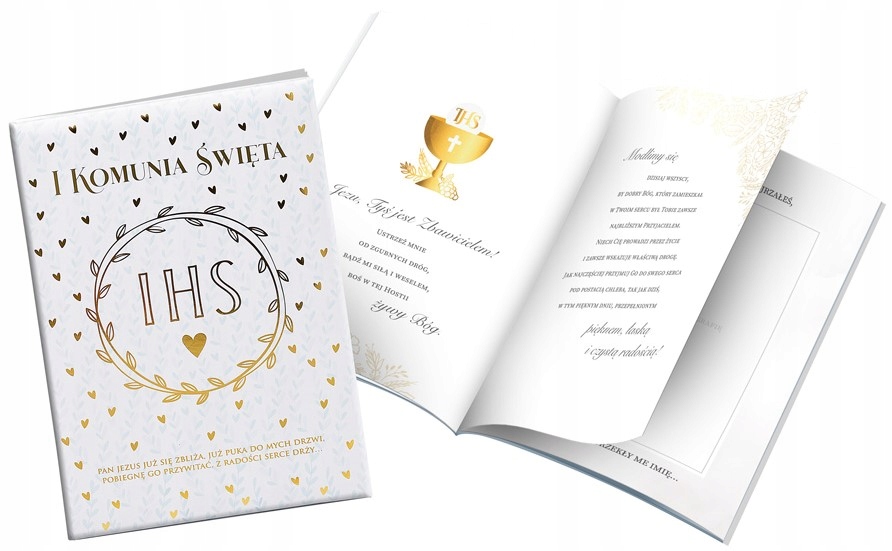 PMB - это уникальный продукт - прекрасно опубликован, элегантный и в то же время привлекательный по цене. Каждый буклет имеет твердую обложку, красочный интерьер с красивой графикой и цитатами, а также пожеланиями и местом для личной посвящения. На внутренней стороне золотой или серебряной обложки находится особый небольшой конверт, в котором вы можете перенести подарочную карту или банкноту. Книга PMB Kukartka - идеальный дар для особого случая, который, несомненно, является первым святым причастием.