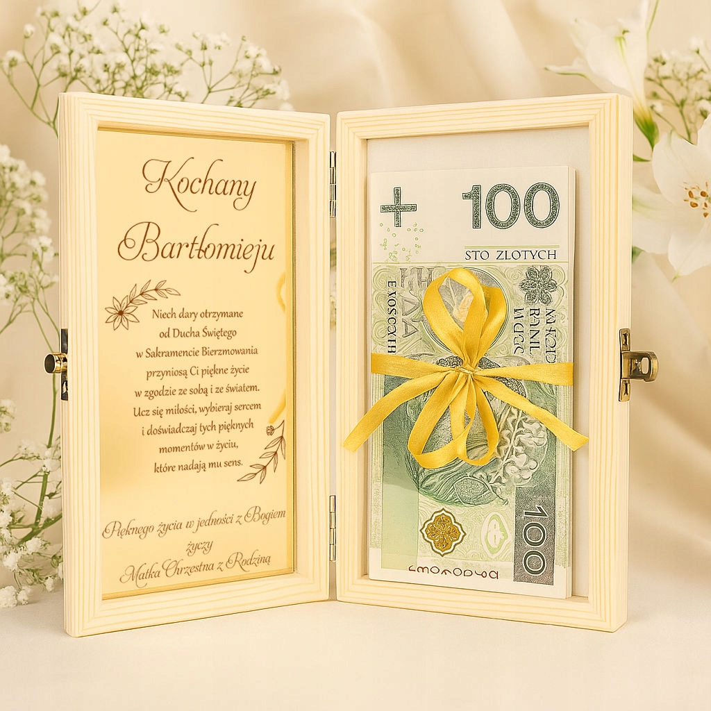 ✅ Персонализация - на крышке имя ребенка и дата Конфирмации, а внутри есть место для золотой бляшки с индивидуальными пожеланиями деталей (по желанию).