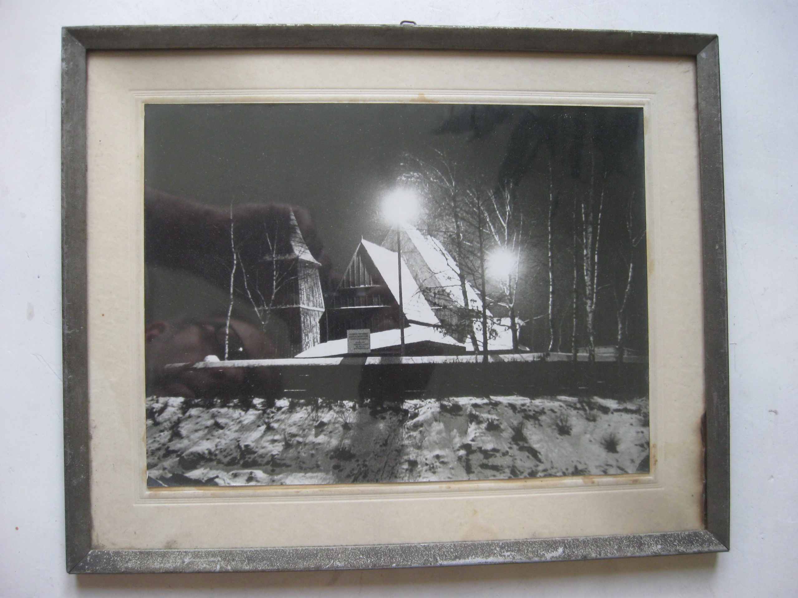 Оригинальную фотографию 1960-х годов в интересной ночной съемке.Церковь Св. Архангел Михаил в парке Костюшко в Катовице