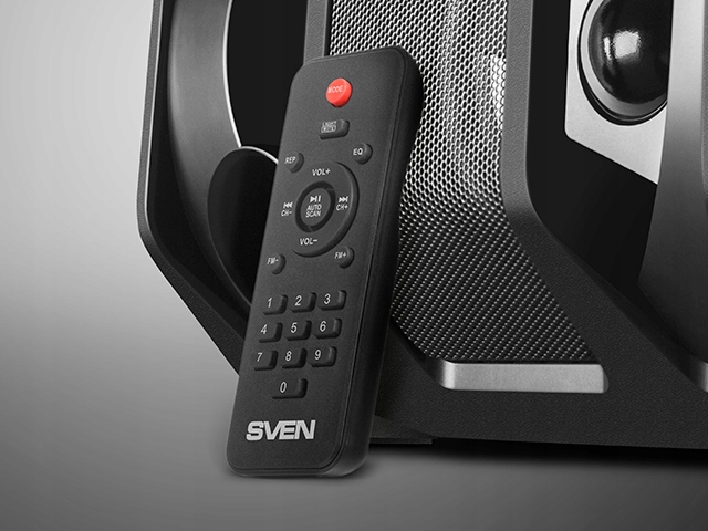 Вы слушали музыку и захотели спеть? SVEN поможет вам и в этом. Каждый из них имеет по два микрофонных входа с эффектом эха — петь можно не только соло, но и дуэтом. Громкость самого динамика и микрофонов, а также глубина эффекта эха регулируются с помощью удобных элементов управления на панели управления, расположенной вверху. А когда вам нужно собрать вещи и отправиться дальше, микрофоны можно легко разместить в специальных держателях сзади. Останется только взять аудиосистему за удобную ручку для переноски и переместить ее в нужное место.