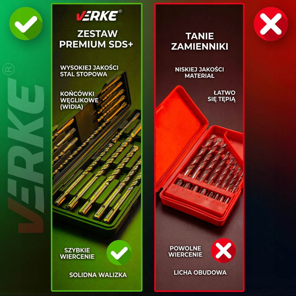 Профессиональный набор дрелей SDS+ от VERKE — это решение, созданное для требовательных пользователей — как специалистов по строительству, монтажу и ремонту, так и амбициозных любителей DIY. В комплект входят 11 тщательно подобранных сверл по бетону, которые позволяют выполнять широкий спектр работ - от точных монтажных отверстий до глубокого сверления в твердых строительных материалах.