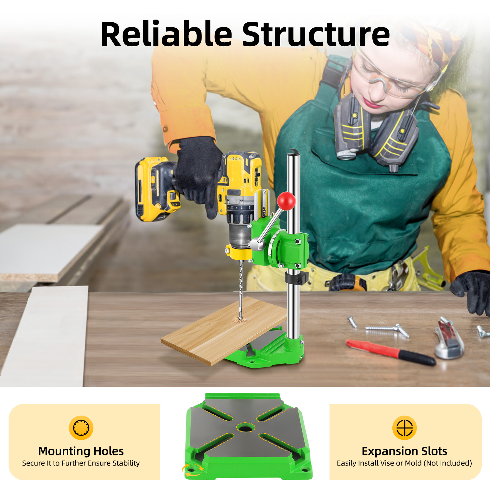 Благодаря прочной конструкции, гибкости и удобному дизайну эта подставка для ручной дрели станет отличным инструментом для ваших работ по сверлению. Регулируемый диаметр зажима совместим с широким спектром ручных дрелей для легкой установки. Высококачественные материалы, регулировка угла 90 °, высокоточная шкала и конструкция с толстым основанием обеспечивают точное, гибкое и стабильное использование, делая работу с инструментом более профессиональной и простой.