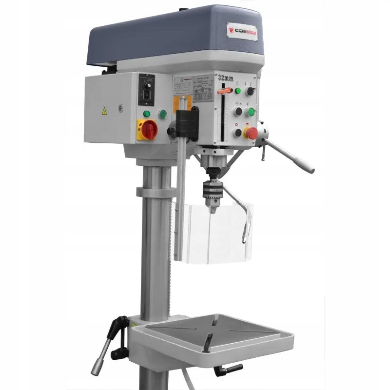 Мощный и эффективный перфоратор для промышленного использования высотой 190 см. УСТРОЙСТВО С АВТОМАТИЧЕСКОЙ ПОДАЧЕЙ ШПИНДЕЛЯ. Дрель имеет эффективную систему охлаждения с металлическим изливом. Оснащен 8 СКОРОСТЬМИ ВРАЩЕНИЯ с диапазоном скоростей: 140, 250, 380, 500, 580, 850, 1250, 1960 об/мин. Станок имеет функцию автоматического изменения направления вращения во время нарезания резьбы. Два рабочих стола предоставляют множество возможностей обработки. Асинхронный двигатель последнего поколения с правильно спроектированной ременной передачей обеспечивает высокую мощность и эффективность дрели.