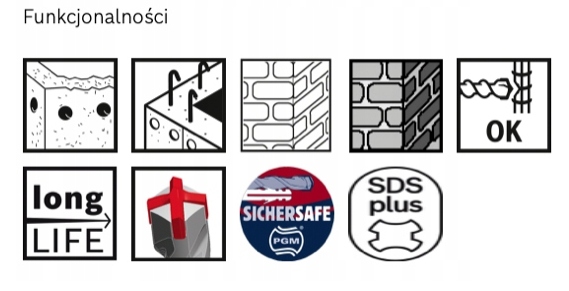 Сверло SDS plus-5X позволяет очень эффективно сверлить железобетон. Геометрическая форма головки с 4 лезвиями предотвращает ее заклинивание и поломку, обеспечивая оптимальную работу. Головка с переменным углом, а также большие и короткие канавки для удаления пыли в четырехзаходной конструкции позволяют быстро удалять пыль, поэтому сверло может быстро просверливать бетон и арматуру и с меньшим износом. Для эффективной работы и получения отверстия точного диаметра центрирующий наконечник с самого начала направляет сверло, не давая ему смещаться. Данное сверло рекомендуется для сверления в каменной кладке, бетоне и железобетоне. Сверло подходит ко всем перфораторам с держателями SDS plus.