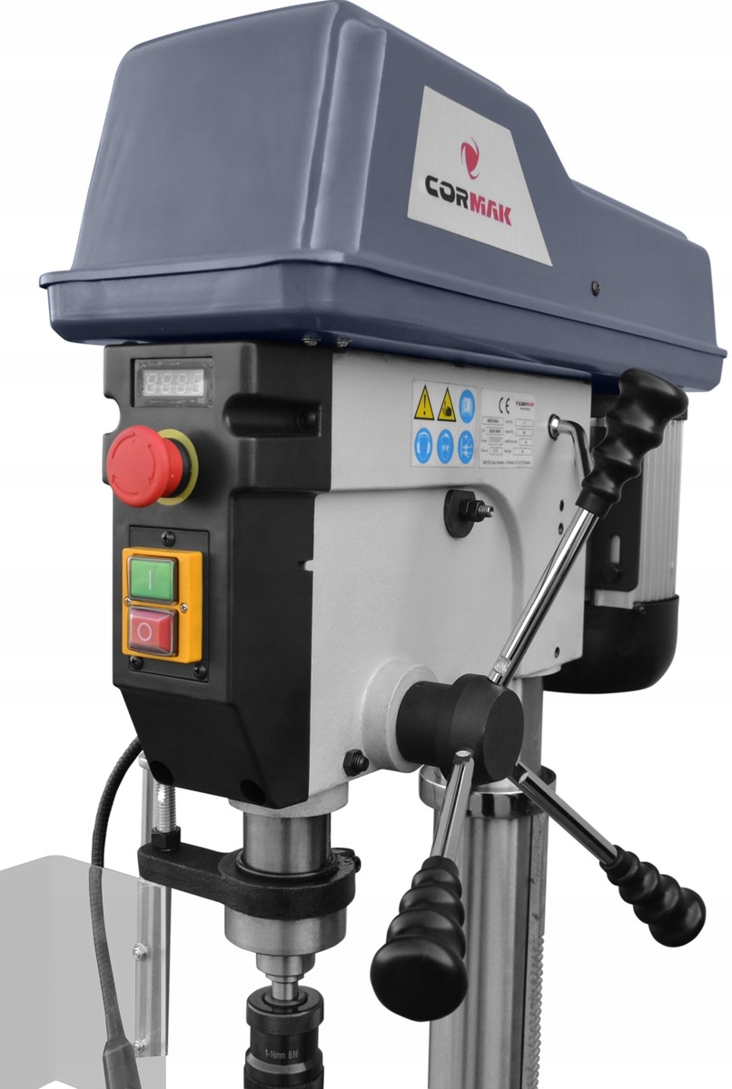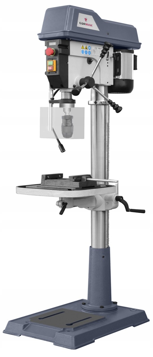 Сверло, благодаря своей жесткой конструкции, обеспечивает идеальное качество сверления. Наклонный стол позволяет выполнять широкий спектр обработки. Устройство оснащено электронным указателем скорости, указателем глубины сверления и подвижной головкой. Тиски 125 мм в комплекте. Модель оснащена плавной регулировкой скорости вращения шпинделя.