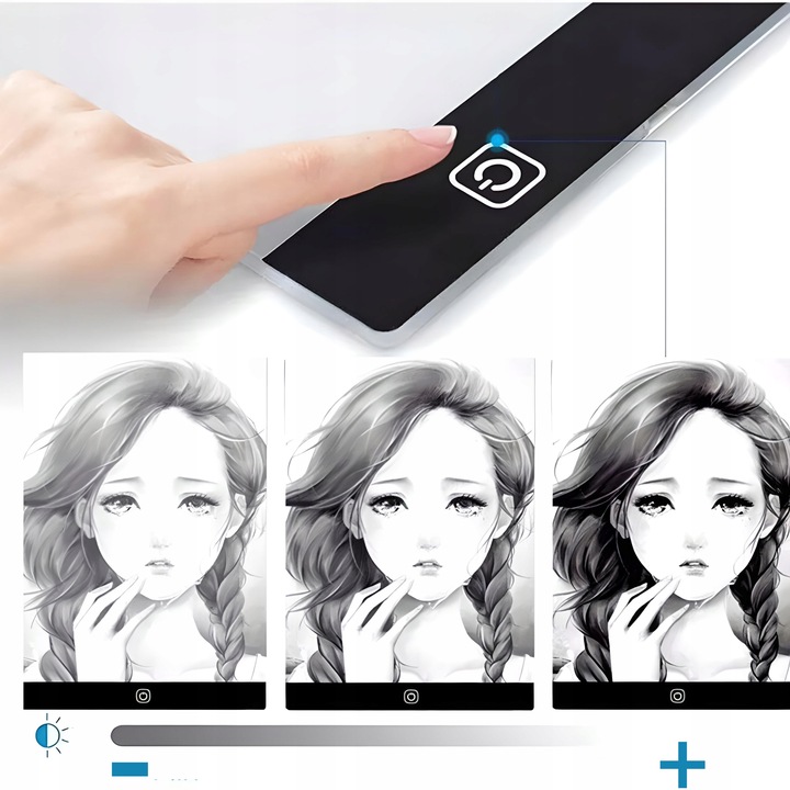 Доска оснащена тремя режимами подсветки, которые можно выбирать с помощью простой в использовании сенсорной кнопки. Чтобы выключить подсветку, просто удерживайте кнопку на мгновение. Благодаря этому инструменту вы сможете выбрать подходящее освещение для каждой толщины бумаги, чтобы точно и легко скопировать изображение внизу.