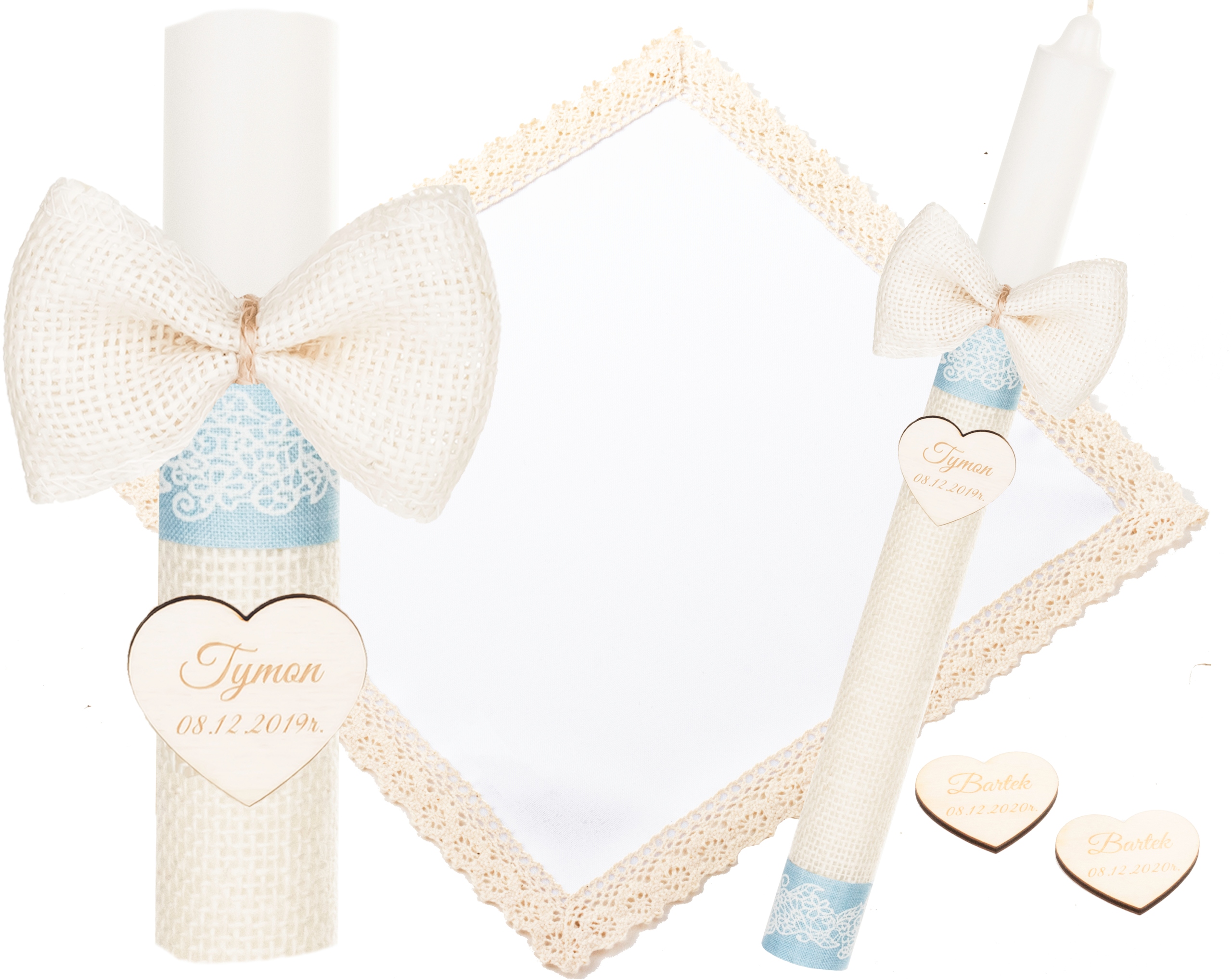 Дополнительно - добавляем 2 вещи к каждому купленному набору в подарок подвески с гравировкой имени ребенка и даты крещения (например, на свечке). Их можно добавить в подарок или оставить родителям и детям на память :)