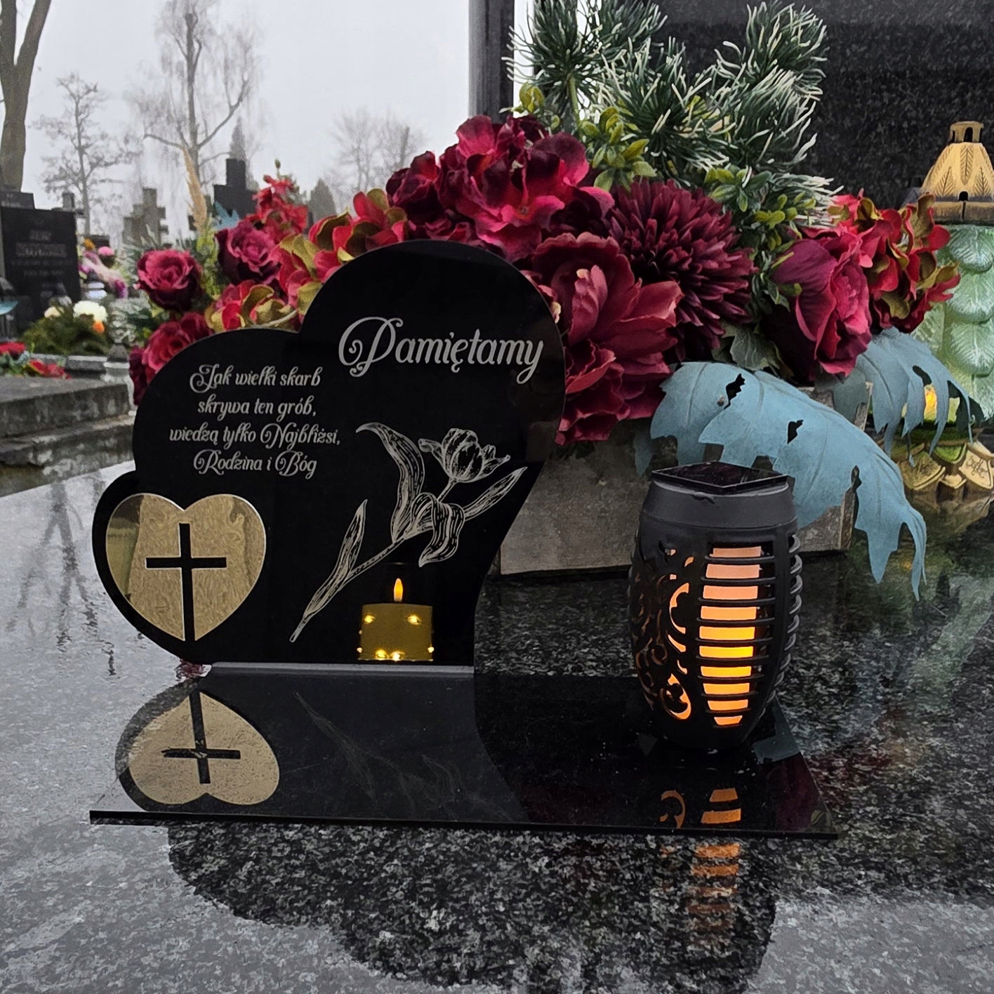 🌹Солнечная могильная свеча с сердцем и декоративным светильником 🌹