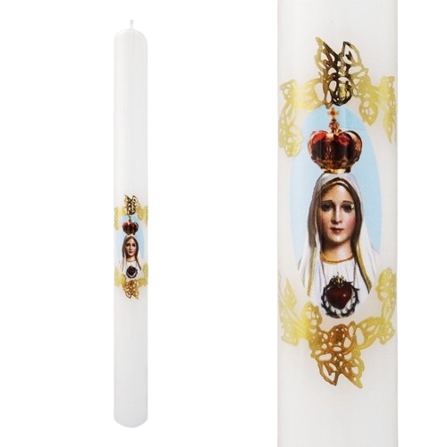 Свеча Сретенская, белая, Богоматерь Фатимская, 42 см + капельница