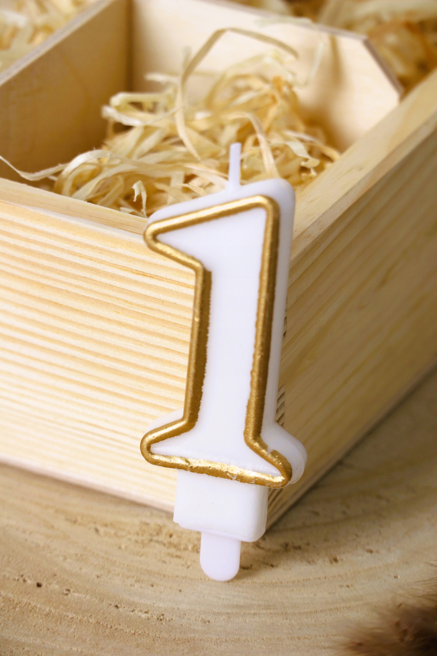 СВІЧКА НОМЕР 1, БІЛА З ЗОЛОТОЮ ОПРАВОЮ