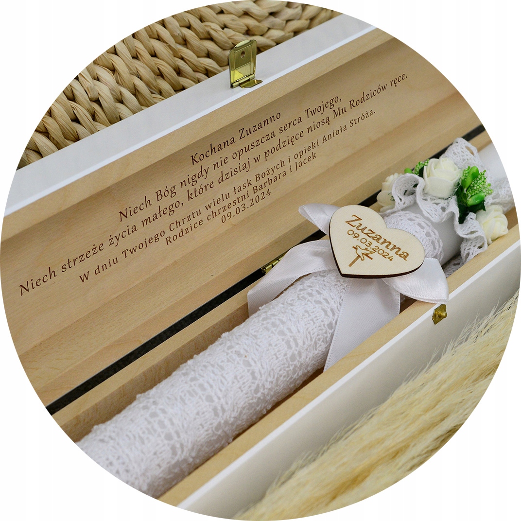 СВІЧКА та ОДЯГ ДЛЯ ХРЕЩЕННЯ ініціал B + ДЕРЕВ'ЯНА Скринька з гравіюванням БІЛИЙ PŚBR