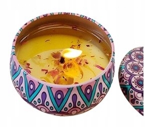 Свеча аромат в элегантном круглом металлическом контейнере . Сделанный из Sojewogo Wax, выделяет успокаивающий аромат, идеально подходит для создания успокаивающей и дружелюбной атмосферы в каждом пространстве. Дом. После полного использования свечей эти красивые банки могут быть использованы в качестве декоративного контейнера для хранения