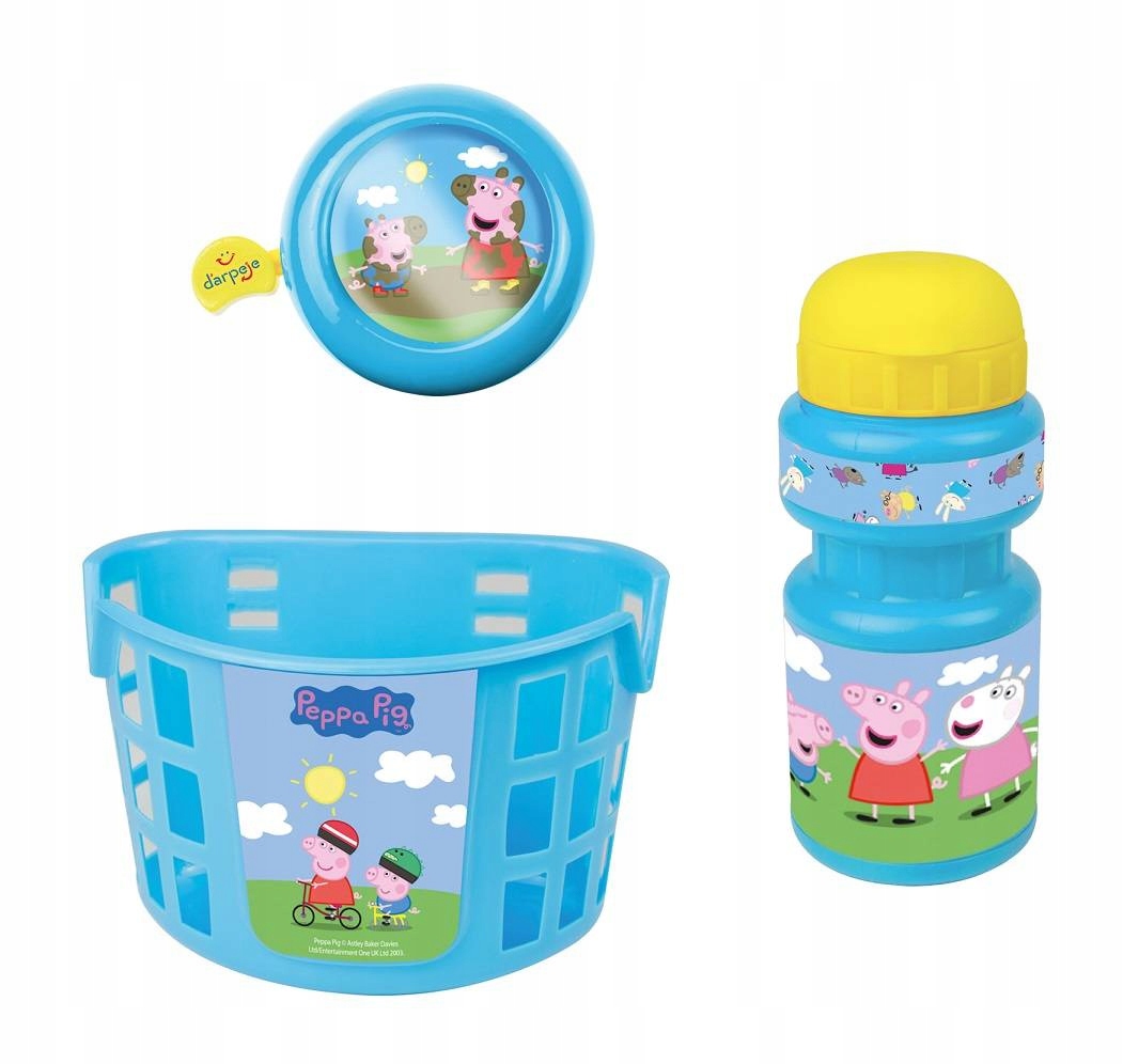 НАБОР «СВИНКА ПЕППА»: КОРЗИНКА ДЛЯ ВЕЛОСИПЕДА, КОЛОКОЛЬЧИК, БУТЫЛКА