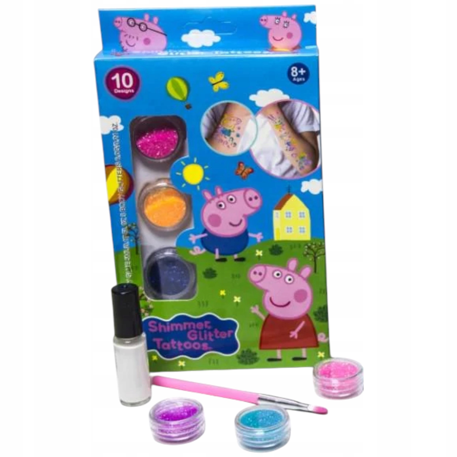 Введите немного магии и великолепия для каждого веселья благодаря набору за создание блестящих татуировок из серии Peppa Pig! Этот творческий набор идеально подходит для вечеринок, наряжая или просто играет дома. Татуировки чрезвычайно легко применять и одинаково легко удалить, что означает, что как дети, так и взрослые смогут насладиться временем, полным творческого развлечения