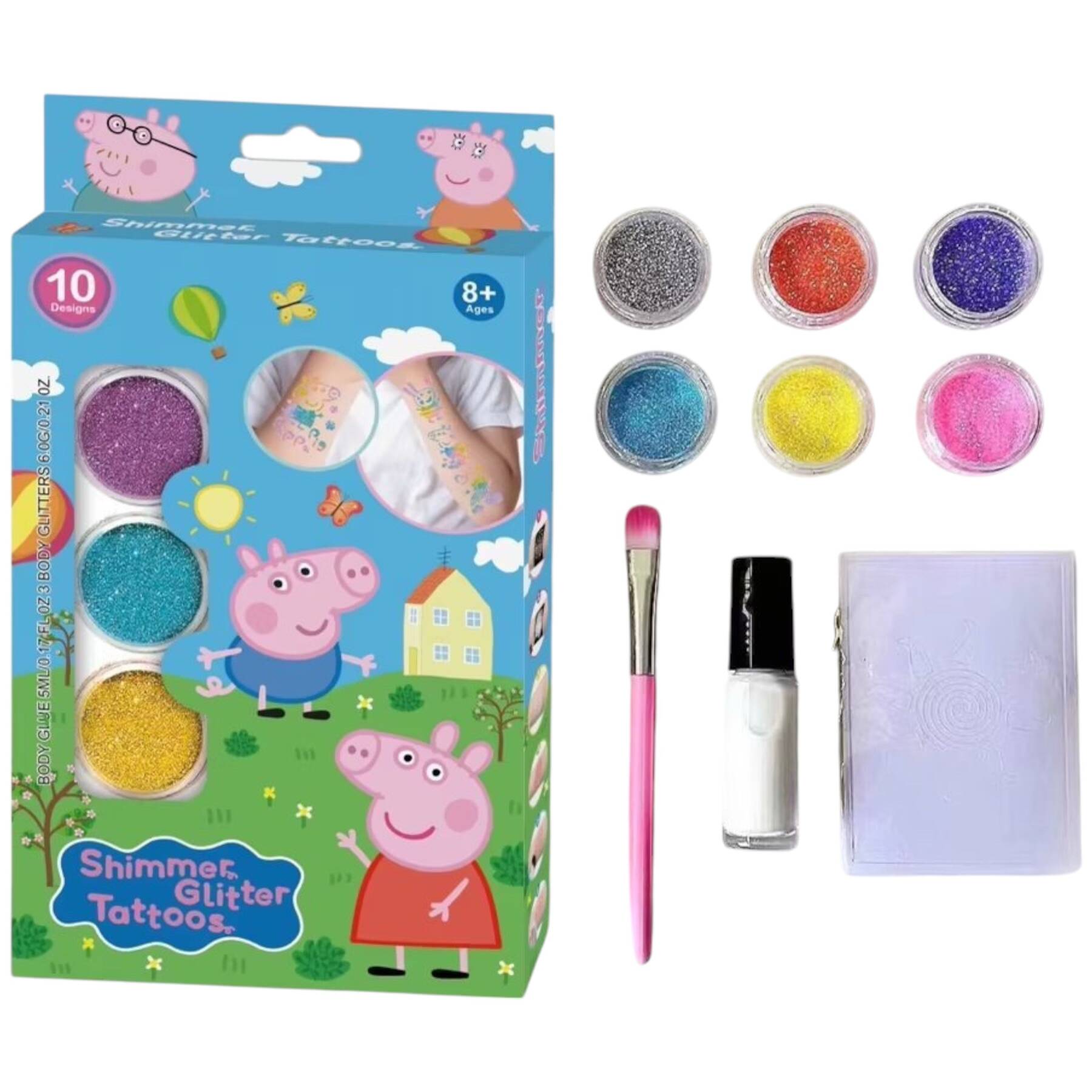 Свинья татуировки Peppa Set для создания шаблонов татуировок с блестящими татуировками