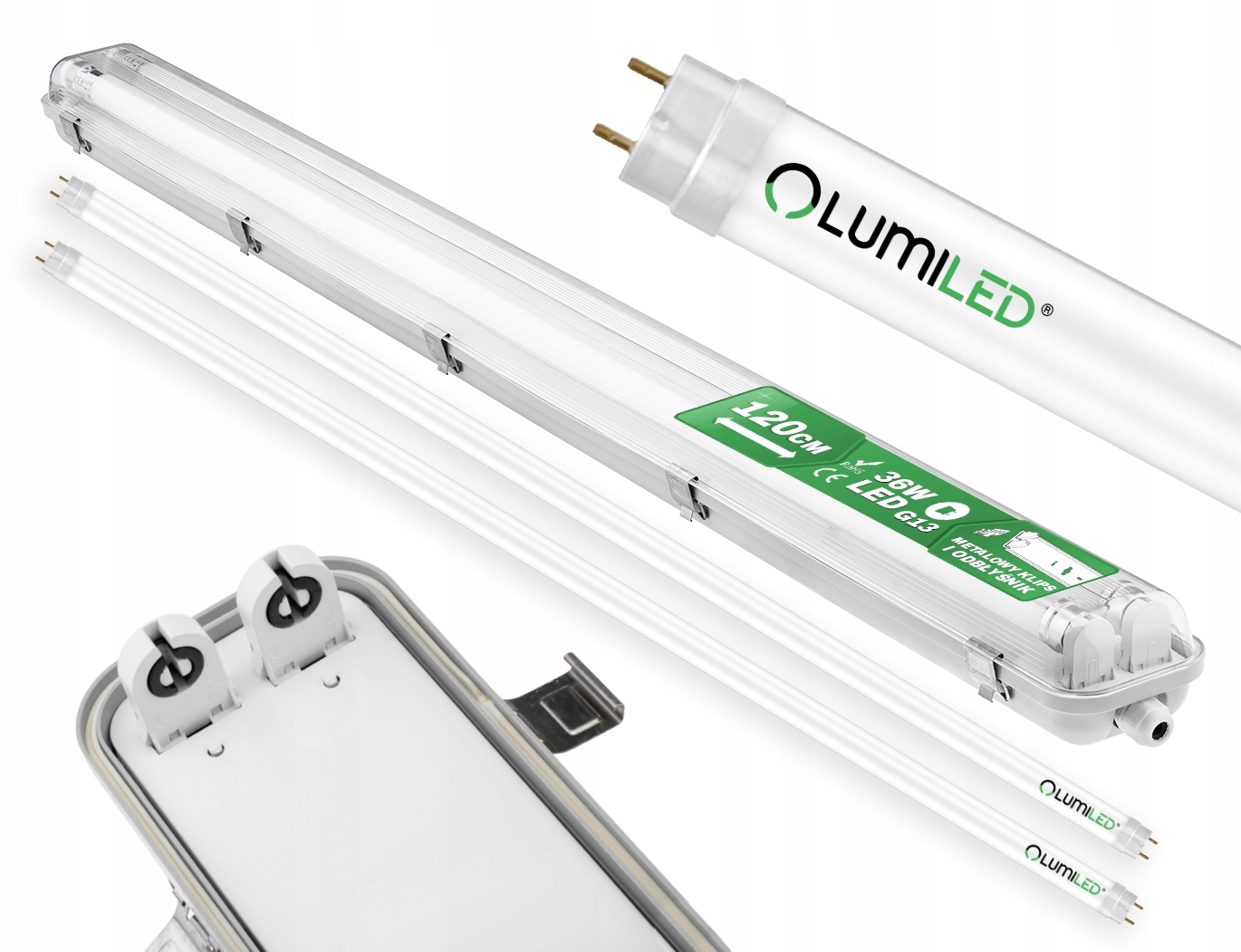 Герметичный пылезащитный светильник 120 см 2xT8 G13 IP65 + светодиодные люминесцентные лампы Lumiled мощностью 18 Вт