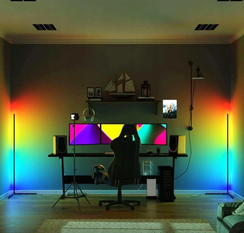 Современный светодиодный угловой светильник с диодами RGB. Он прекрасно подойдет как для небольших помещений – займет мало места, так и отлично рассеет свет в большом пространстве. Благодаря доступным цветам вы сможете настроить подсветку под свои нужды и создать неповторимую атмосферу с помощью пульта дистанционного управления – не подходя к светильнику!