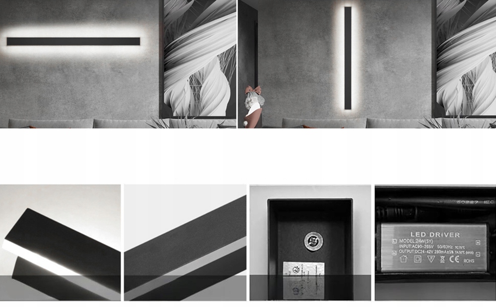 �【Технические характеристики】: Длина: 80 см, Ширина: 5 см, Толщина: 4 см, Мощность: 24 Вт, Напряжение: 110–240 В, Цвет: черный, Люмен: 2400 лм, Цветовая температура: 6000–6400 К Белый свет, длительный срок службы. до 50 000 часов.