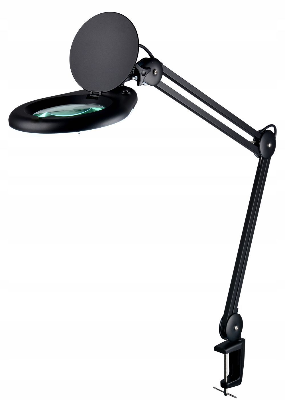 Светильник 9005LED-127-5D BLACK с лупой предназначен для работы на столешнице. Наблюдаемый объект увеличивается с помощью стеклянной линзы большого диаметра 127 мм и оптического увеличения 5DPI. Увеличение в 5 диоптрий составляет примерно х2,25. Для повышения комфорта работы вокруг линзы расположены 60 ярких SMD-светодиодов, равномерно освещающих рабочую зону. Благодаря равномерному распределению светодиодов источник света не отбрасывает тени. Преимуществом использования светодиодов является их низкое энергопотребление (энергосбережение) и отсутствие нагревательного эффекта. Лампа очень хорошо освещает место наблюдения. Лампа оснащена запирающейся крышкой объектива. Лампу также можно с успехом использовать как обычную настольную лампу.
