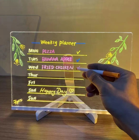 Светящаяся акриловая доска для написания светодиодного рисунка с освещенной подставкой