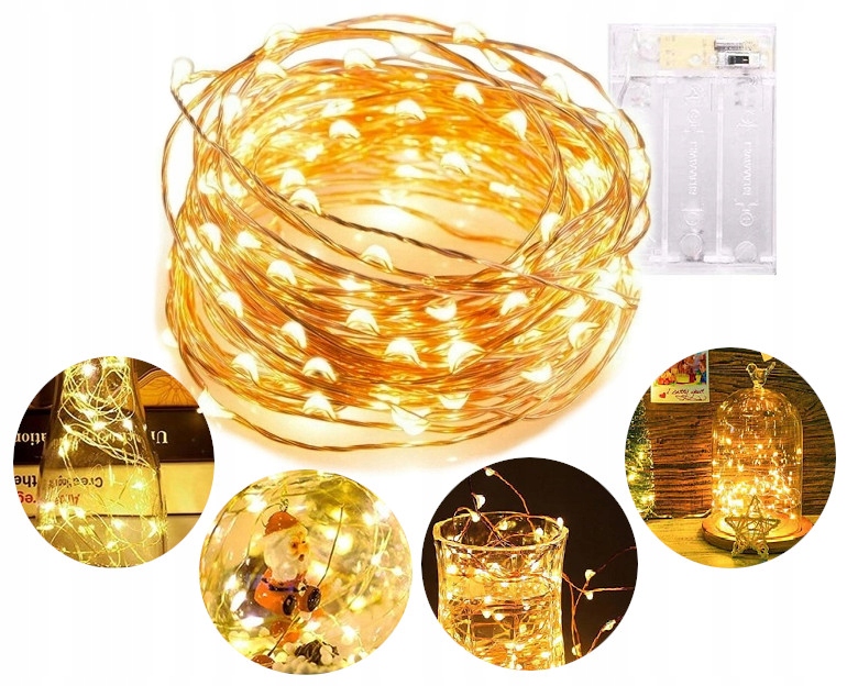 СВІТЛІ ДРОВІ 50 LED БАТАРЕЇ ТЕПЛЕ СВІТЛО 5М