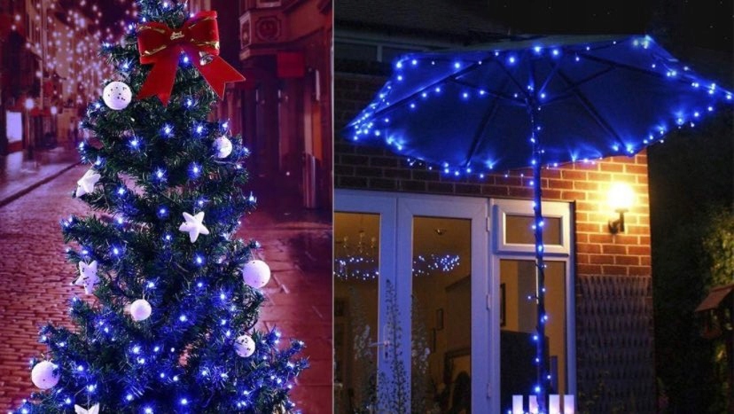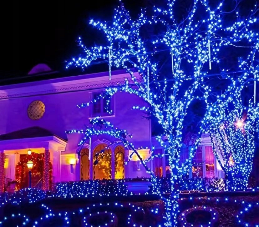 РОЖДЕСТВЕНСКИЕ ОГНИ 500 СВЕТОДИОДНЫХ СИНИХ С ПРОГРАММАТОРОМ В ПОМЕЩЕНИИ НА УЛИЦЕ