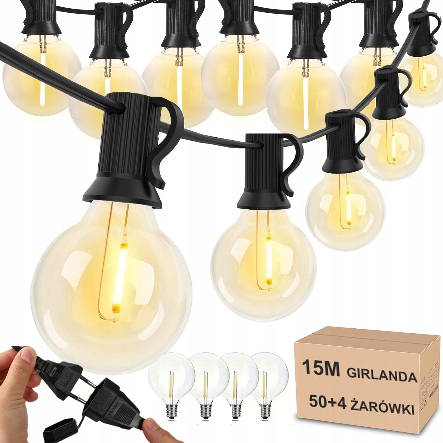 Светодиодная световая цепь Girlanda 15m 50+4 открытая лампочка G40 h1>