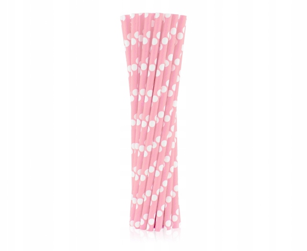 бумажная розовая соломка в горошек 24 ПК