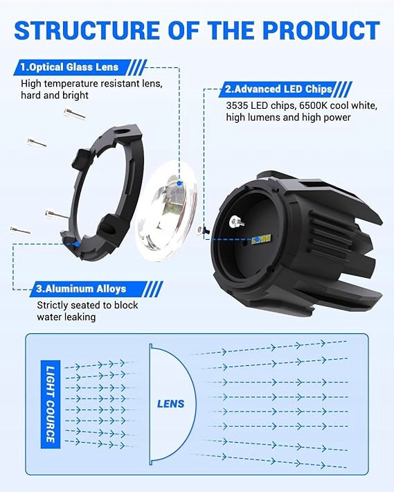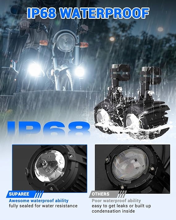 - 【Супер яркий дорожный свет】 Проводные мотоциклетные огни Suparee были научно разработаны с использованием высококачественных светодиодных чипов 3535 и линз ПК для повышения видимости и обеспечения безопасности вождения. Высококачественный чип увеличивает передачу света до 60 Вт, независимо от того, ночью, дождь или туман идеально подходит для обеспечения идеального луча для верховой езды