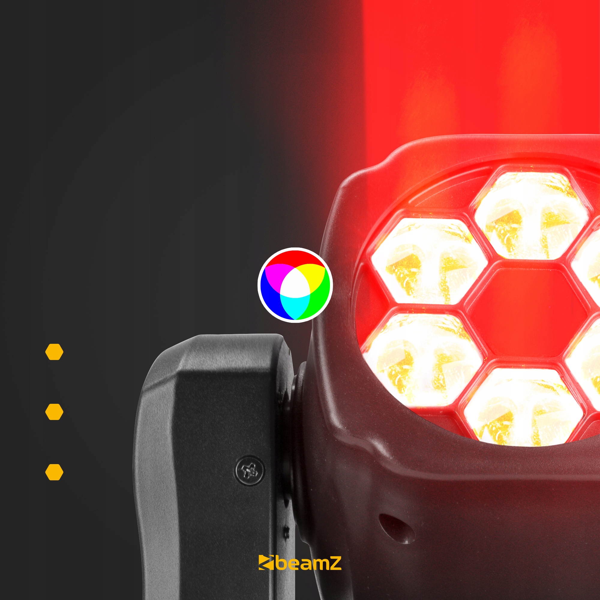 Помимо чудесного эффекта вращающихся линз, Panther 80 также отличается силой света и цветом. Имея не менее 6 светодиодов мощностью 12 Вт на каждый, Panther 80 обеспечивает огромную светоотдачу. Поскольку каждый светодиод содержит красный, зеленый, синий и белый цвета (RGBW), путем смешивания цветов можно создать огромное количество цветов. Добавляя белый цвет, вы можете создать даже пастельные тона.