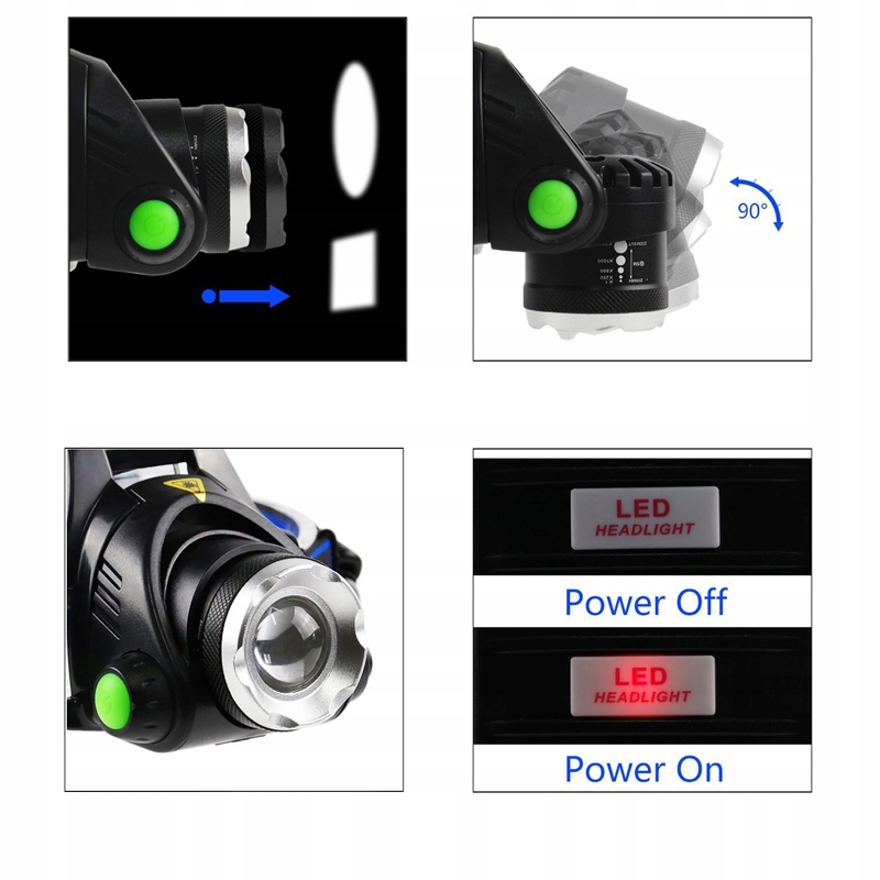 Диод имеет регулировку ZOOM и 3 режима работы: 100% свет, 50% свет и стробоскоп. Он светится холодным белым ксеноновым цветом.