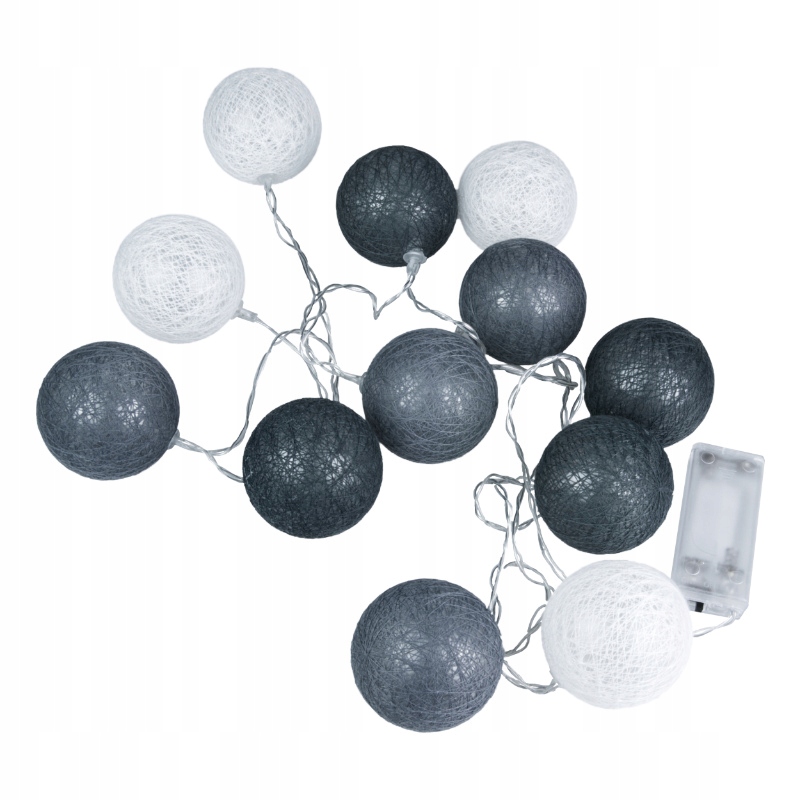 Гирлянда светодиодная, 12 шариков - белый и серый, 6 см, ДПМ