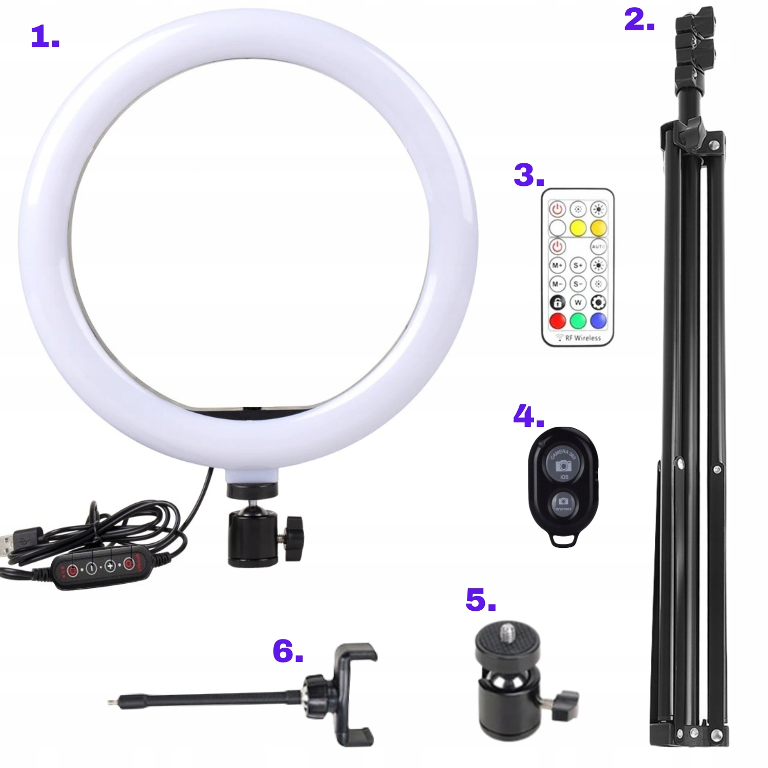 ЦВЕТНАЯ СВЕТОДИОДНАЯ КОЛЬЦЕВАЯ ЛАМПА + ШТАТИВ 220 СМ