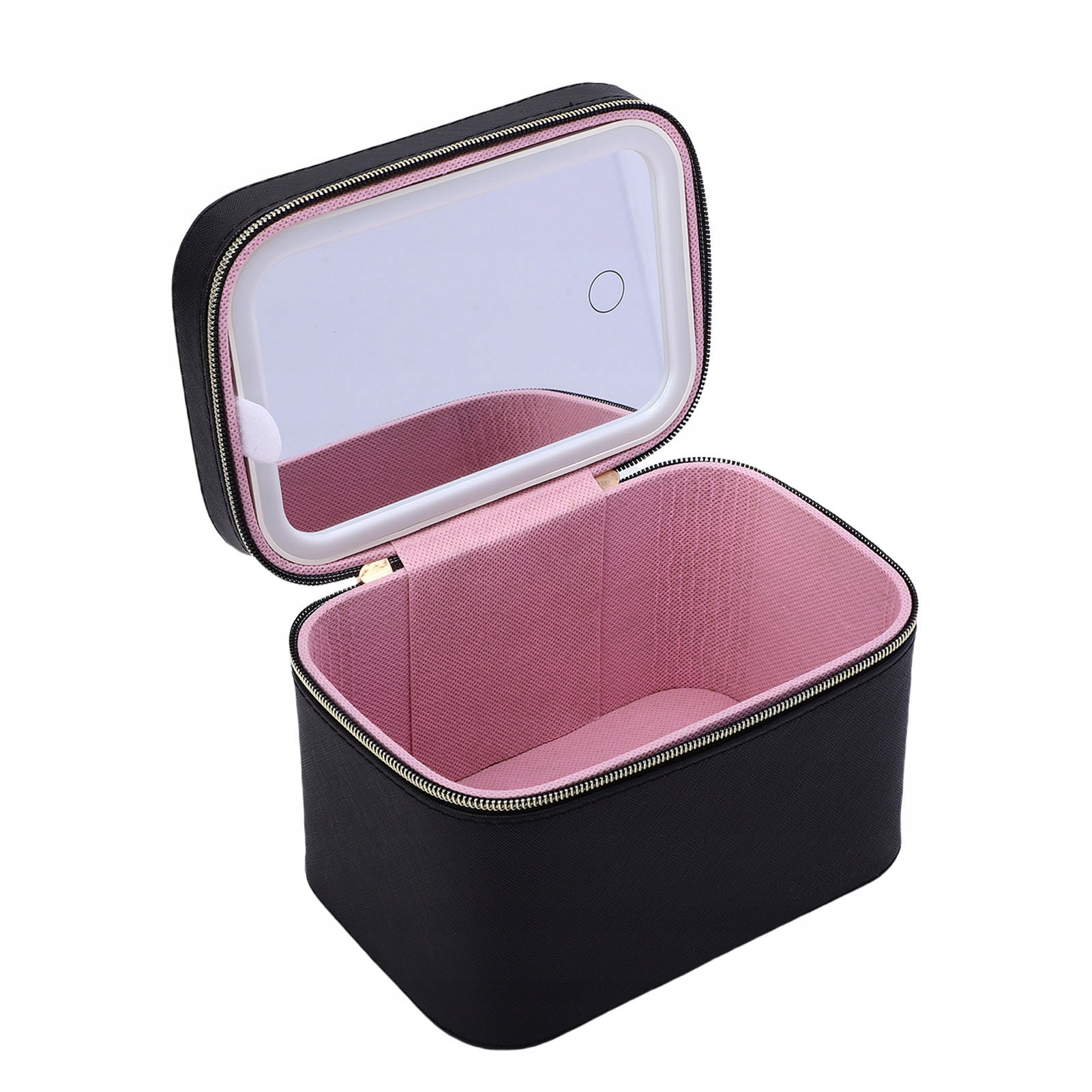 1. SMART LED MAKEUP MIRROR: Дорожная косметичка с зеркалом оснащена встроенным перезаряжаемым светодиодным зеркалом с 3 регулируемыми оттенками (белый/нейтральный/теплый) и плавным затемнением, что позволяет точно наносить макияж в любых условиях освещения.