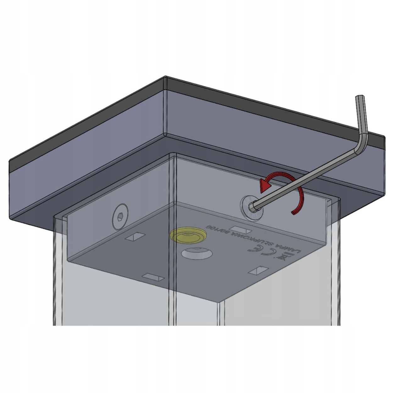 - Выкрутите конические винты с внутренним шестигранником как можно сильнее, чтобы нижнюю часть лампы с винтами можно было вставить в стойку с небольшим сопротивлением.