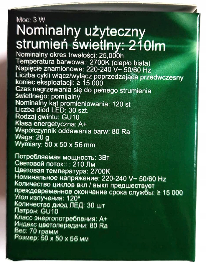 Світлодіодна лампа 3 Вт, галогенна, теплий білий світлодіод