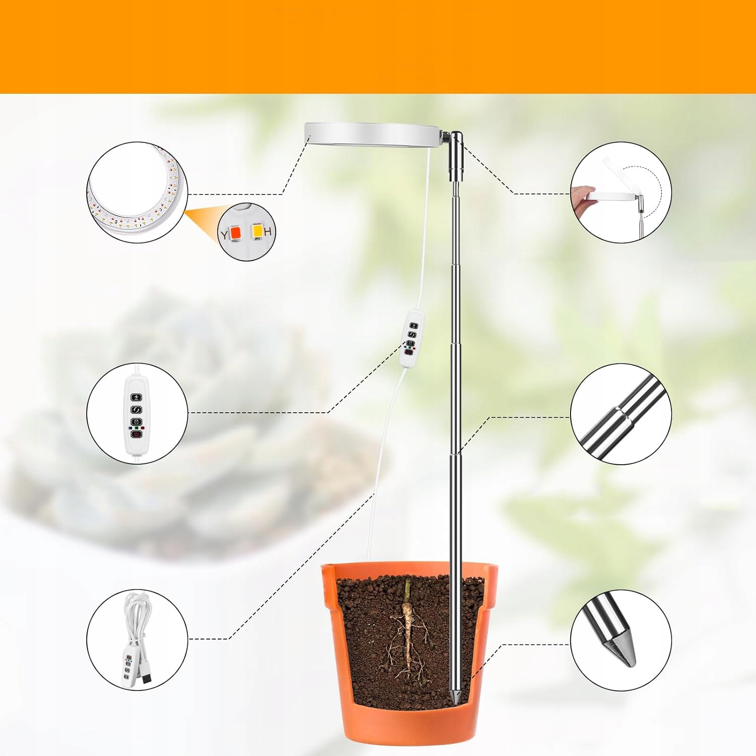 СВЕТОДИОДНАЯ ЛАМПА ДЛЯ КОМНАТНЫХ РАСТЕНИЙ, ПОЛНЫЙ СПЕКТР СВЕТА, 3 УРОВНЯ ЯРКОСТИ