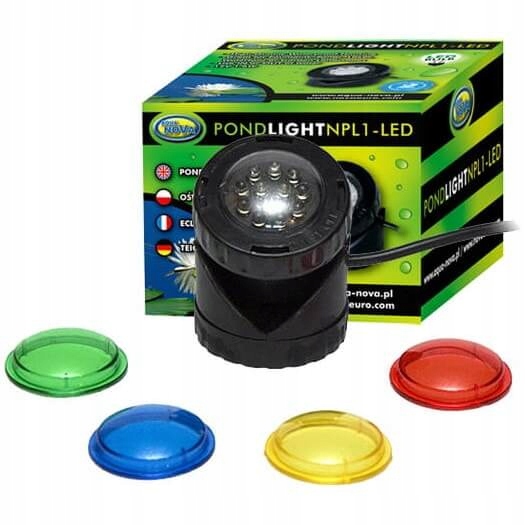 Aqua Nova NPL1-LED — это подводный комплект светодиодного освещения пруда, состоящий из галогенных светодиодов и трансформатора низкого напряжения для обеспечения безопасности. В комплект входит пять цветов освещения, базовый белый свет и четыре крышки, меняющие цвет освещения на красный, желтый, синий и зеленый. Различные цвета фильтров позволяют создавать уникальные эффекты. Отражатель пригоден для использования как под поверхностью воды, так и вне воды. Светильник идеален для создания ландшафтной композиции сада, помогает выделить его любимые части, водостойкий рефлектор особенно подходит для прудов, садовых прудов и фонтанов. Диаметр отражателя составляет 5 см, и высота 7 см, поэтому его можно разместить где угодно, чтобы незаметно осветить выбранную точку.