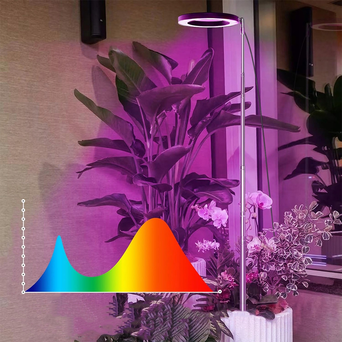 Светодиодный кольцевой светильник YOUKUKE полного спектра для выращивания комнатных растений, регулируемая высота 30–147 см, 72 светодиода, 10 уровней яркости с регулировкой яркости, таймер на 3/9/12 часов для комнатных растений (черный)