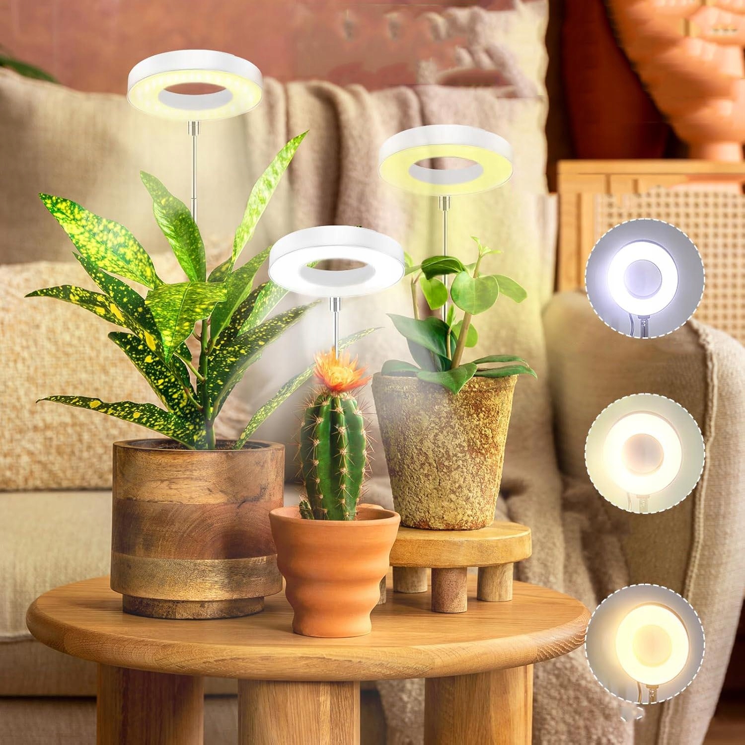 Наша лампа для растений полного спектра имеет расположение светодиодов по кругу, поэтому растения лучше поглощают свет и растут счастливее. Имея три режима освещения (белый свет, теплый цвет, теплый белый), он также имеет 9 регулируемых настроек яркости (10–100%). Гибкая схема позволяет подобрать наиболее подходящую яркость для ваших растений, подходящую для всех видов бонсай и садовых растений, розмарина, орхидей и т. д.