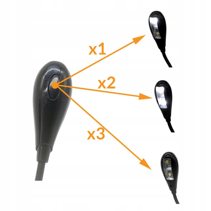 Он оснащен 4 яркими светодиодами с возможностью включения каждого по отдельности для выбора нужного количества света< /б>. Удобная клипса и изогнутое оголовье позволяют прикрепить светильник к любой поверхности и точно расположить его там, где необходимо. Питание от USB-порта можно заменить на 3 батарейки типа ААА, что делает фонарь беспроводным.