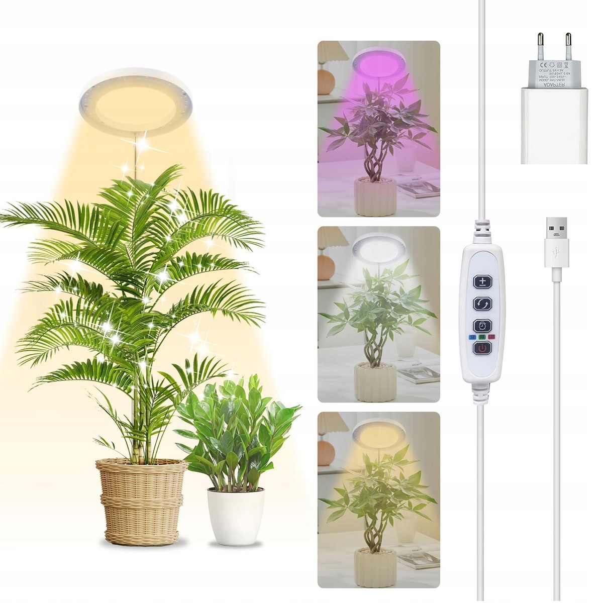 - 1 светодиодный кольцевой светильник для растений с USB-кабелем и контроллером
