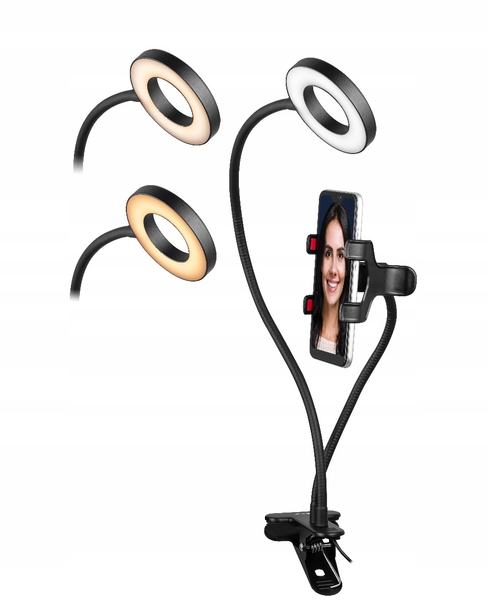 Удобный держатель с гибкими дужками позволяет закрепите телефон на одном из них, а другое оголовье с лампой расположите так, чтобы свет падал под лучшим углом.