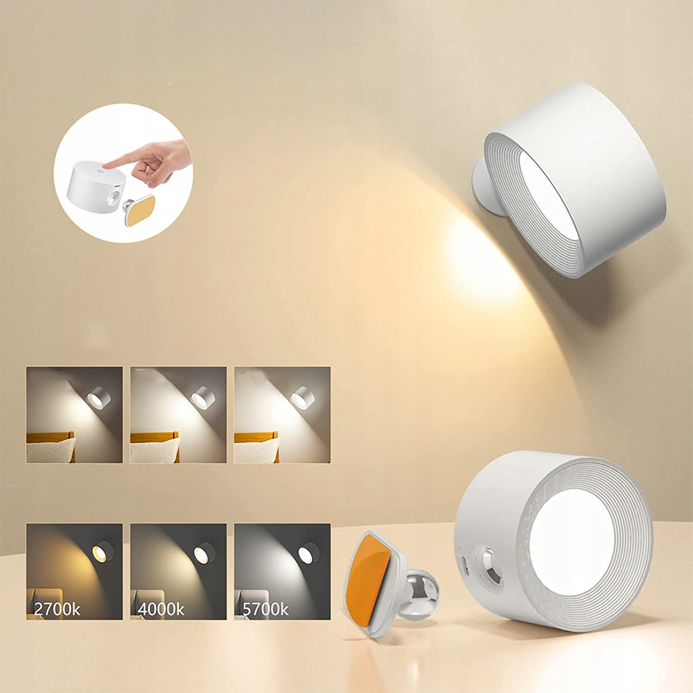 Настенный светильник может свободно вращаться, обеспечивая различные направления освещения, а прочный клей 3M обеспечивает простую и безопасную установку на различных поверхностях.