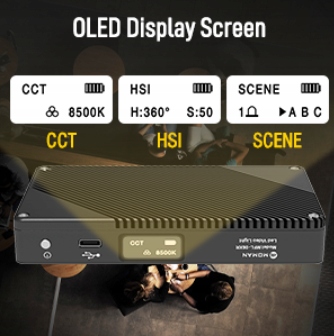 Экран OLED: визуализируя все операции, этот OLED-экран может помочь вам настроить режимы освещения и яркости. На этом маленьком экране вы также можете проверить состояние батареи, режимы освещения, значение цвета, цветовую температуру и т. д.