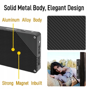 Эта видеолампа меньше и легче, чем большинство аналогичных продуктов на рынке. Его можно просто положить в карман или сумочку, много места он не займет. Портативный для съемки на улице.